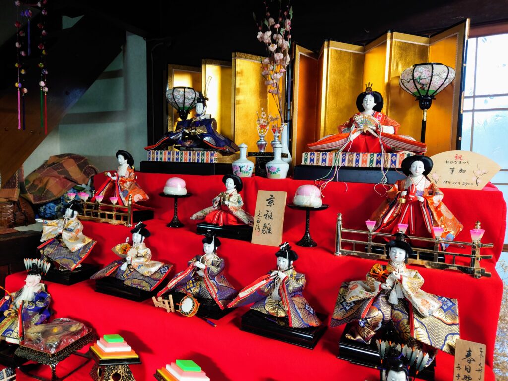 玄関から古い町家の造りをご覧いただけます。雛人形も飾っていますのでぜひご覧ください。
