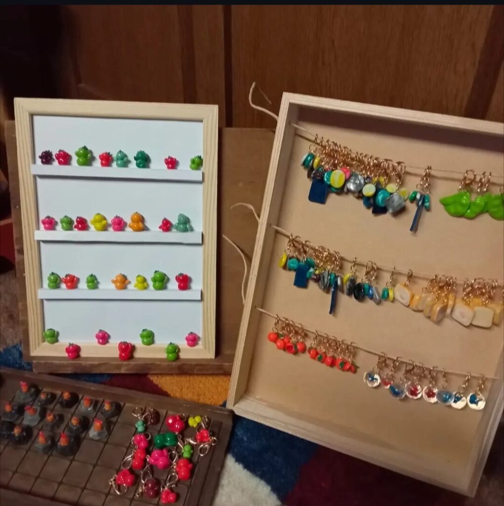 ヘアゴムや樹脂粘土の作品を出品していますのでそちらも是非。