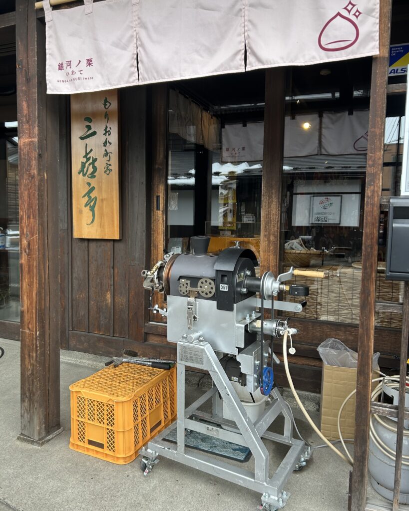 町家の軒先で焼いた焼き栗の販売