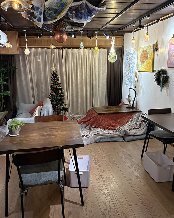 建物の奥がカフェスペースとなっている隠れ家みたいな古民家カフェ。日替わりで個性あるメニューを昼から夜までご用意しております。冬場はこたつ席もあり、こだわった癒しの空間となっています。カフェだけでなく、2階でもみほぐしやアロママッサージも受... -